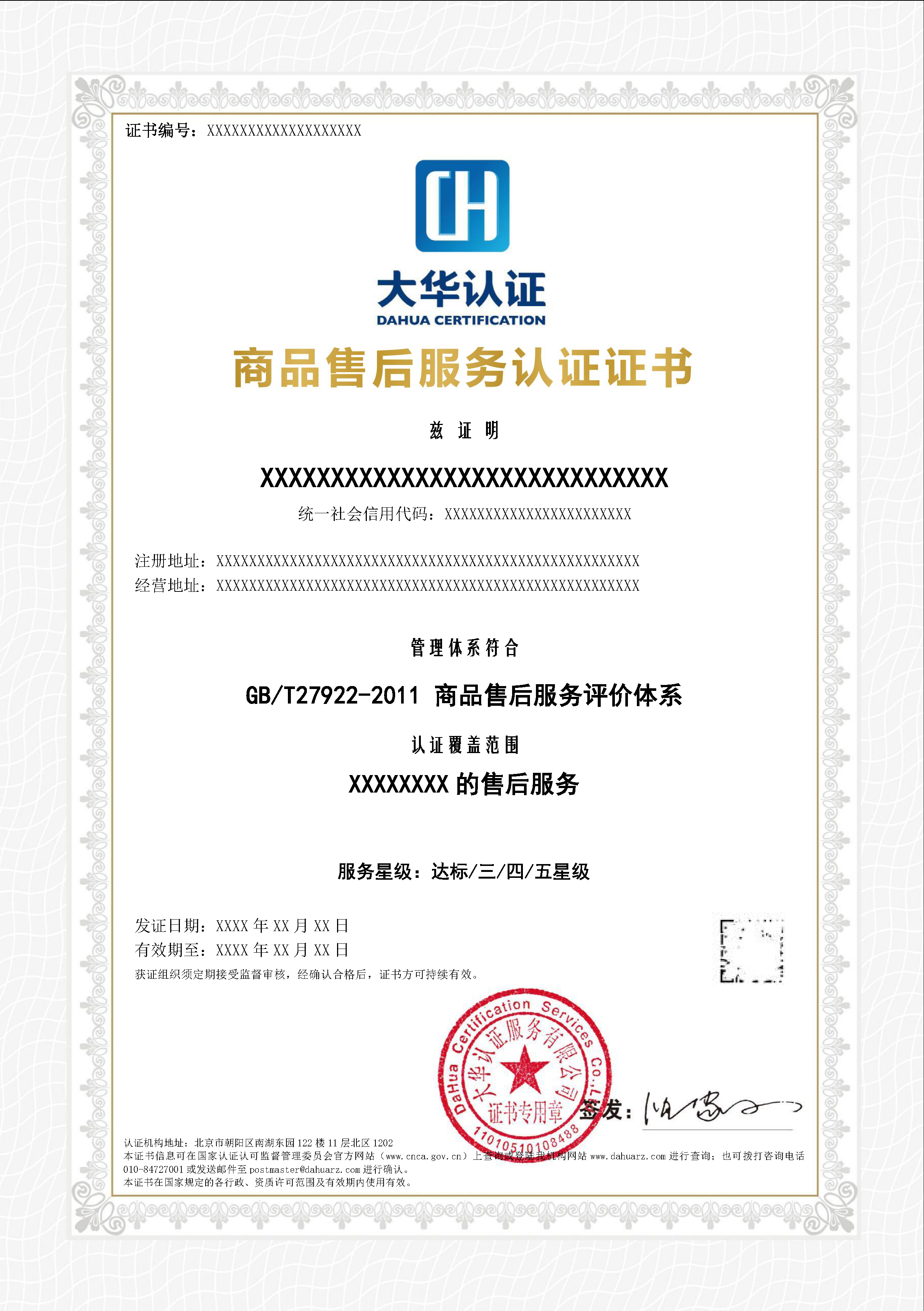 商品售后服务评价体系认证(GB/T27922)